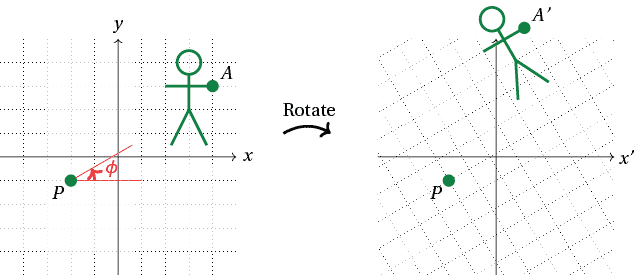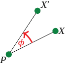 Given a point $P$ in the plane, and an angle $\phi$,2 we can consider rotating points around $P$ by the angle $\phi$. Any point $X$ can be rotated in this way, giving rise to a plane transformation $\mathbb{R}^2 \rightarrow \mathbb{R}^2$.