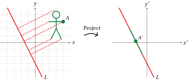 Given a line $L$ in the plane, we can consider projecting points onto $L$. From a point $X$, draw the line through $X$ perpendicular to $L$; the intersection of this line with $L$ is the projection $X'$ of $X$ onto $L$. Projecting all points of the plane onto $L$, we obtain a plane transformation.