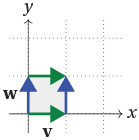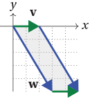 We discussed earlier (in "The effect of a linear transformation") how two vectors ${\bf v}$ and ${\bf w}$ can be used to construct a parallelogram, the parallelogram spanned by ${\bf v}$ and ${\bf w}$. We discussed how, if the matrix $M = \begin{bmatrix} {\bf v} & {\bf w} \end{bmatrix}$ has ${\bf v}$ and ${\bf w}$ as its columns, then the linear transformation $T_M$ sends the unit square to this parallelogram. We also discussed the orientation of this parallelogram and how $T_M$ can preserve or reverse orientation.