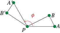 Suppose $A,B$ are distinct from $P$. Consider triangles $PAB$ and $PA'B'$. As $A'$ is obtained from $A$ by a rotation about $P$, $PA = PA'$. Similarly $PB = PB'$. Since $A',B'$ are obtained by rotating $A,B$ by $\phi$ about $P$, $\angle APB = \angle A'PB'$. Hence $\triangle PAB \cong \triangle PA'B'$, so $AB = A'B'$.